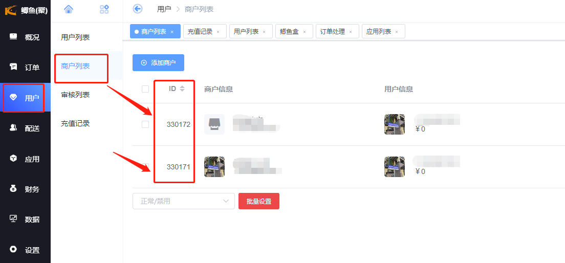 在系统应用-跑腿配送-门店管理绑定鲫鱼商户(在鲫鱼代理后台商户列表查看商户id)